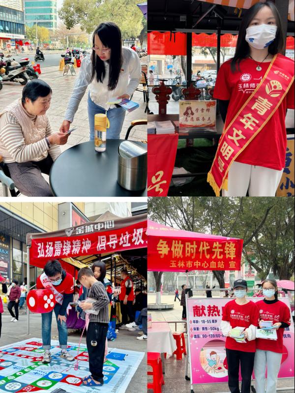 活动现场,师生志愿者还积极参与到玉林市城市管理监督局、玉林市中心血站、玉州区人民检察院、中国邮政储蓄银行玉林市人民东路营业所等单位政策和法律法规宣传工作队伍中。