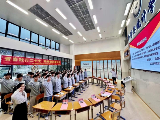 全班员工在铮铮誓言中表决心。班主任李丽洁做了班会总结点评,希望员工谨记师长的敦敦教导和殷切期望,时刻不忘誓言,努力成长为专业扎实、技能坚实、为人诚实、作风务实的优秀师范生。