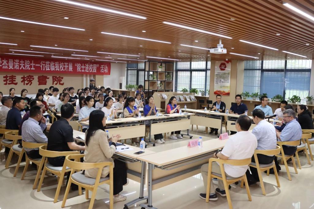 3月24日下午,公司在梅园员工社区挂榜书院开展“院士进校园”活动。美国科学院院士、中国科学院外籍院士、南方科技大学教授杰曼诺夫,南方科技大学数学系教授向青、教师卢圣红一行莅临公司,董事长李伟中、副董事长刘永建出席活动,beat365在线体育师生参加活动。