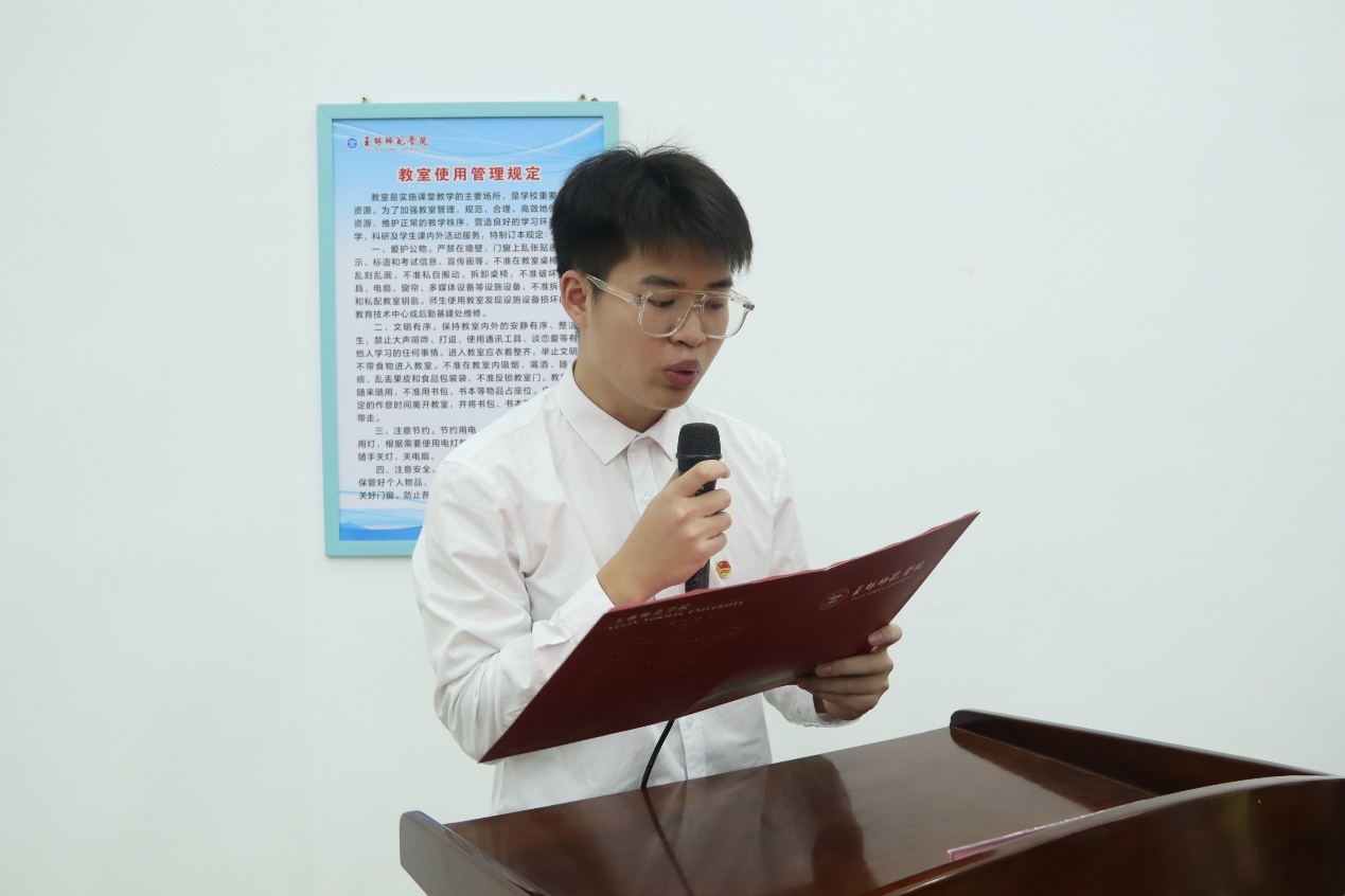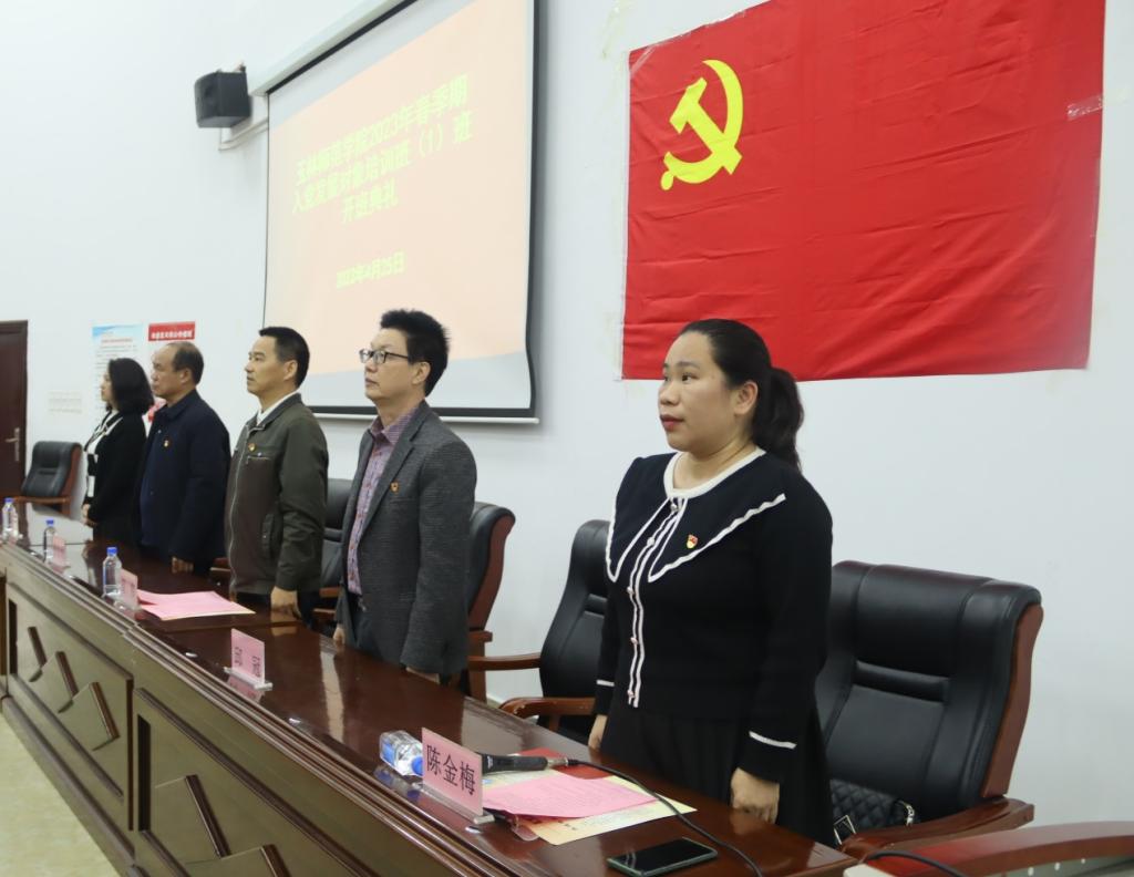 学员代表覃仕栋发言,表明入党的决心,代表学员表示,在培训中牢固树立信念,筑雄心、立大志,知行合一,不断提升自我,将理论知识运用到实践中。最后,陈金梅宣读教学计划和纪律要求,强调教学课时,提高学员对本次培训的总体认知。