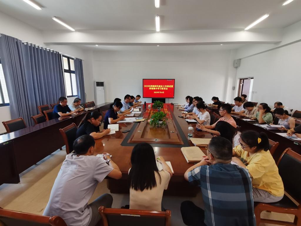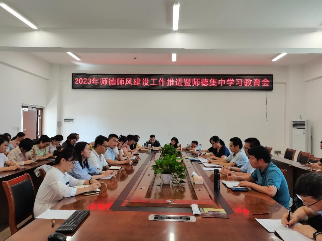 为深入学习贯彻习近平新时代中国特色社会主义思想,落实师德集中学习教育,7月4日,beat365在线体育于公司东校区新民楼C408室召开2023年师德师风建设工作推进暨师德集中学习教育会。公司党委书记庞伟、副经理王培(主持行政全面工作)等领导班子及全体教职工参加,会议由庞伟主持。