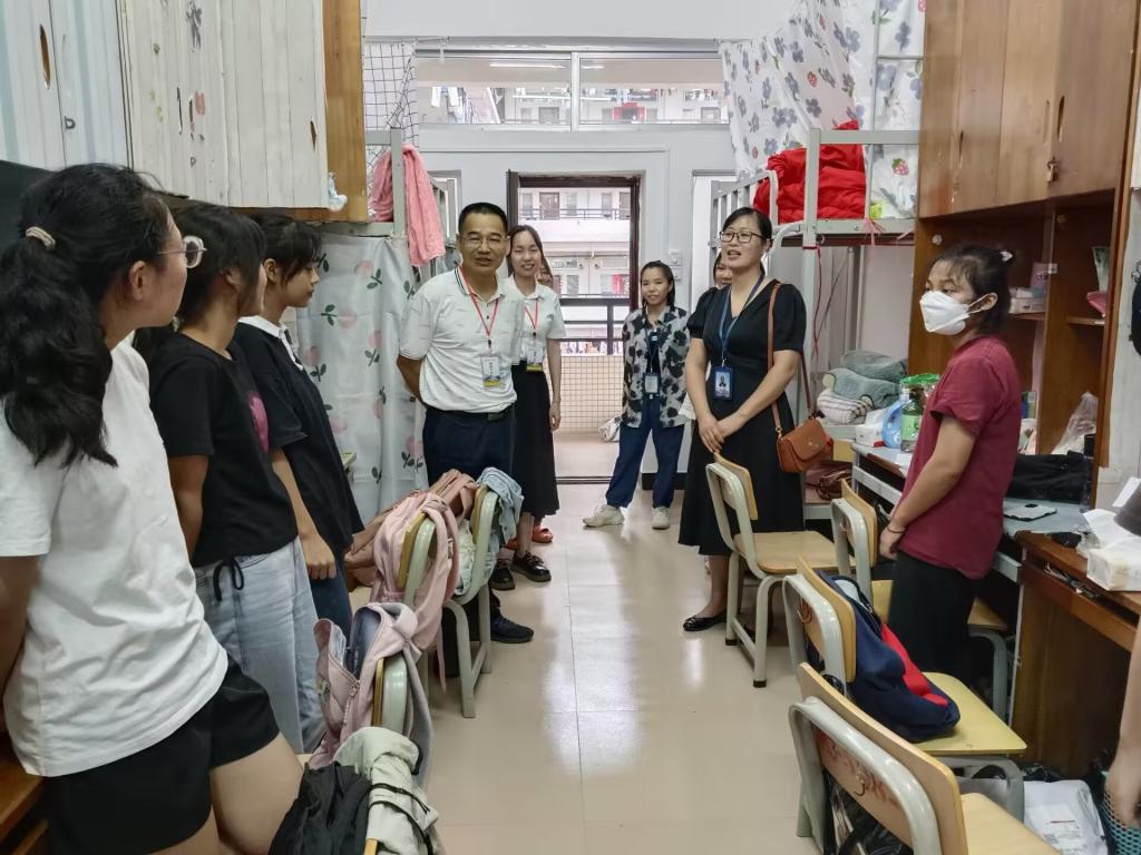 9月2日,数学与统计公司党委书记庞伟、副经理王培(主持全面行政工作)、党委副书记李秀英、党委专职组织员陈金梅等领导班子、辅导员及班主任深入宿舍走访慰问2023级新生。