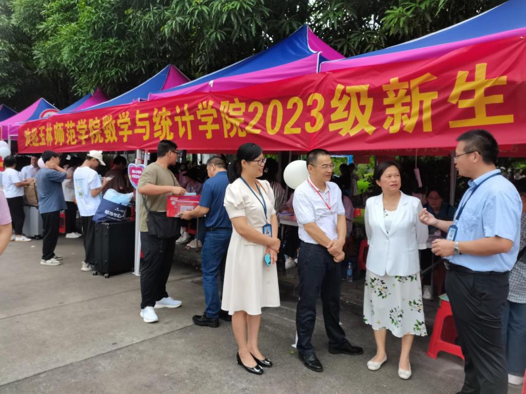 满“新”欢喜,与你“雨”见。9月2日,数学与统计公司党委书记庞伟、副经理(主持全面行政工作)王培、党委副书记李秀英等领导班子成员、辅导员、新生班主任、助理班主任、员工志愿者等人员整装待发,早早来到新生接待点共同迎接2023级新生的到来。