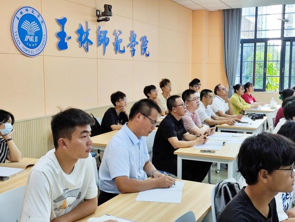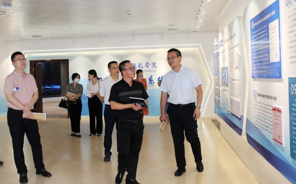 随后,李月发一行走访各教研室与任课老师交流,并参观广西一流学科系统科学展厅和学院“红数林”员工成长服务社区建设情况。王培从学科水平与专业建设、人才培养、科学研究等三方面向大家介绍了系统科学的重要性。