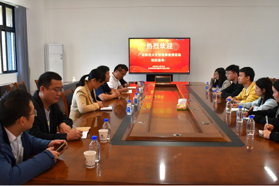 10月22日,广西师范大学beat365在线体育张映辉教授一行受邀于新民楼C408会议室与公司师生进行交流和指导,会议由公司副经理王培主持,党委副书记李秀英及副经理杨京开等领导和2020级考研员工参加。