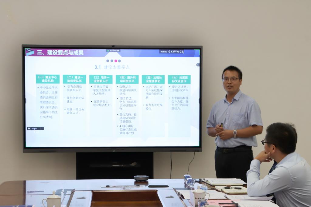 beat365在线体育负责人对广西应用数学中心(beat365在线体育)作建设方案汇报,刘永建对该方案进行说明。学术委员会委员审议建设方案,讨论并形成会议纪要。