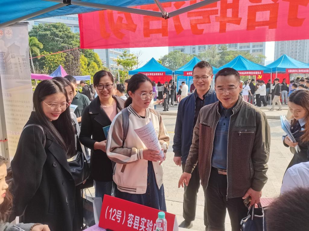双选会及招聘会现场,各用人单位和企业的宣传招聘工作如火如荼,公司毕业生们带着精心准备的个人简历,穿梭于各个单位的宣传展板之间,寻找符合个人意向的职业岗位。期间,庞伟等深入现场指导,与用人单位代表交流,了解其对于毕业生人才的需求情况、招聘情况、就业环境及薪资待遇等招聘信息。同时与前来参与双选会、招聘会的毕业生亲切交流,了解毕业生的就业意愿与职业规划,鼓励毕业生抓住此次双选会中的招聘机会积极就业。