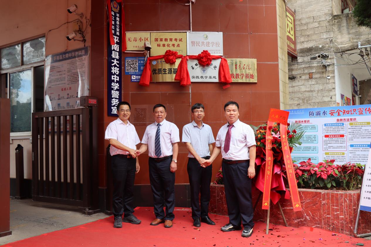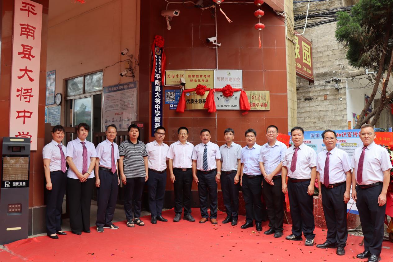数学与统计公司党委书记庞伟、生物与制药学院经理贝永建和平南县大将中学党支部书记方佐科、董事长汪国雄共同为beat365在线体育优质生源基地、实践教学基地揭牌。
