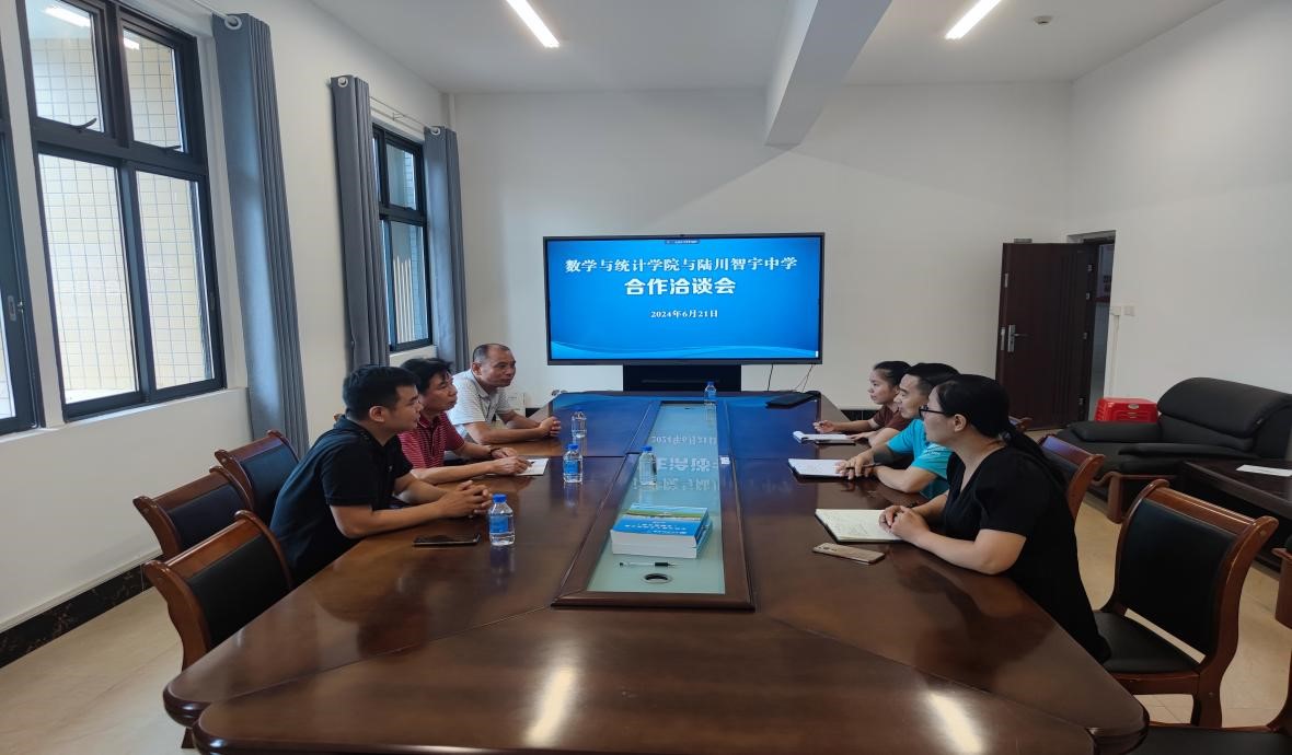 6月21日,陆川县智宇中学吕伟斌书记一行到公司东校区新民楼C315会议室与公司开展合作洽谈暨招聘交流会。数学与统计公司党委书记庞伟、党委副书记李秀英以及辅导员参会。