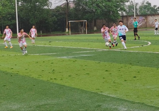 面对绵绵细雨,球员们没有抱怨,大家都提前到达比赛场地热身,随后双方队长进行赛前战术安排和人员调整问题。随着裁判的哨响,整个球场充满了紧张的气氛,各位球员都全力以赴,积极争夺球权,积极进攻。场下,啦啦队队员们为公司运动员加油打气,现场氛围活跃。