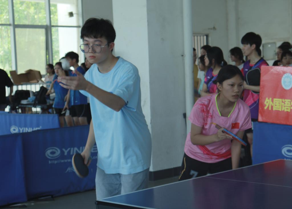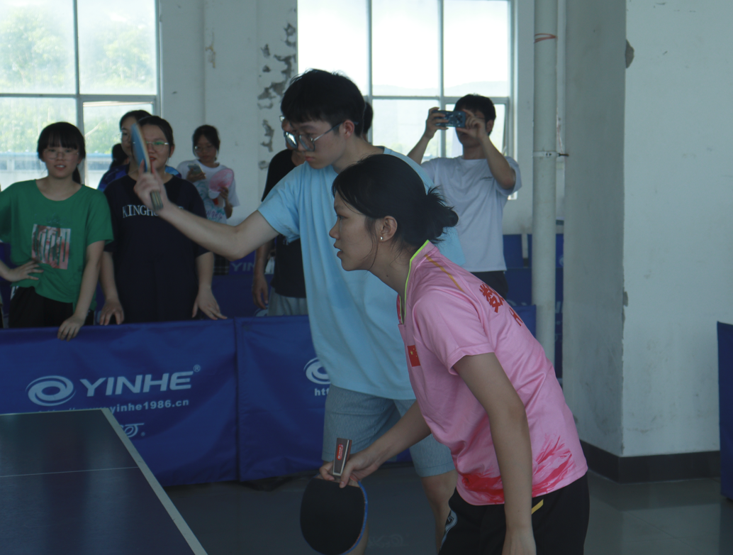 5月30日下午,数统学院与政法学院于公司东校区中快三楼乒乓球馆三号场地进行乒乓球比赛。赛前,运动员进行肩关节拉伸、腰部拉伸等热身运动,激活身体,防止拉伤。比赛采取五局三胜制,数统运动员起初奋力争先,以2:1暂时领先,一局过后比分持平,比赛进入白热化阶段。最后一局数统运动员失误,最终2:3惜败政法学院队。