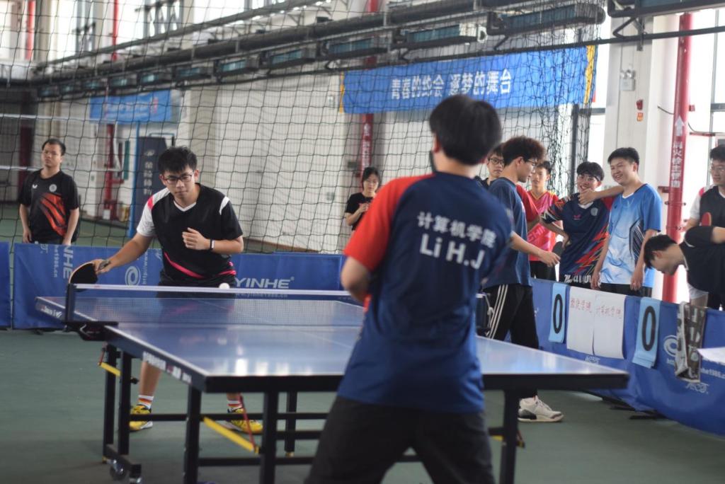 为丰富校园生活,促进员工身心健康发展,5月7日下午,数统学院与计算机学院于行健馆一号场进行一场激烈的男子乒乓球比赛。