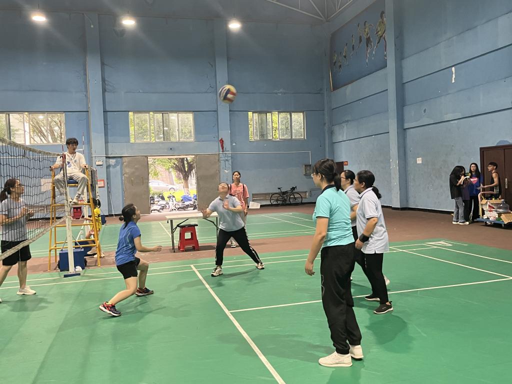 5月18日,数统学院分别与图书馆、第三分工会、商学院、第二分工会、智慧农学院于公司东校区羽毛球馆进行教工组女子排球比赛。
