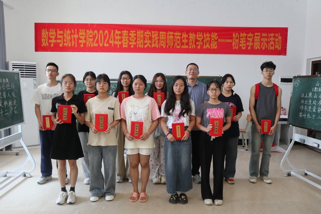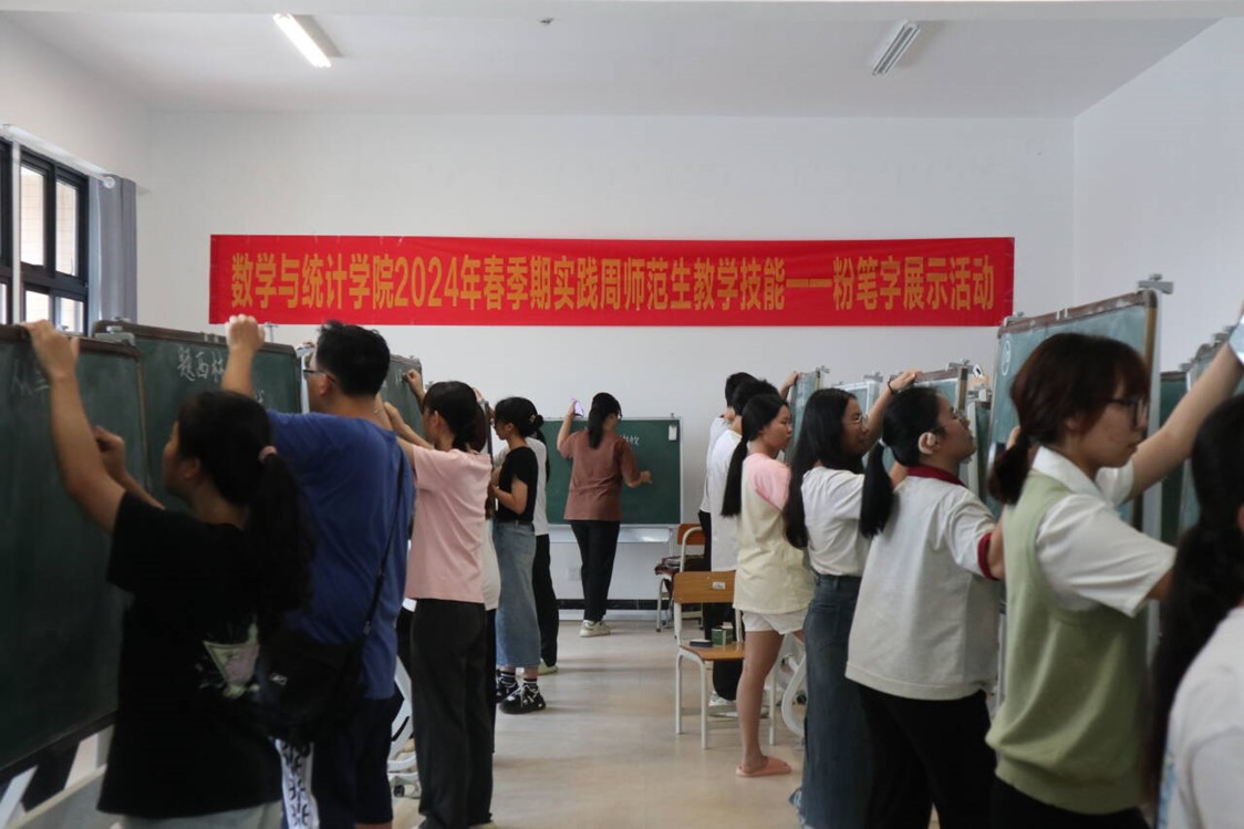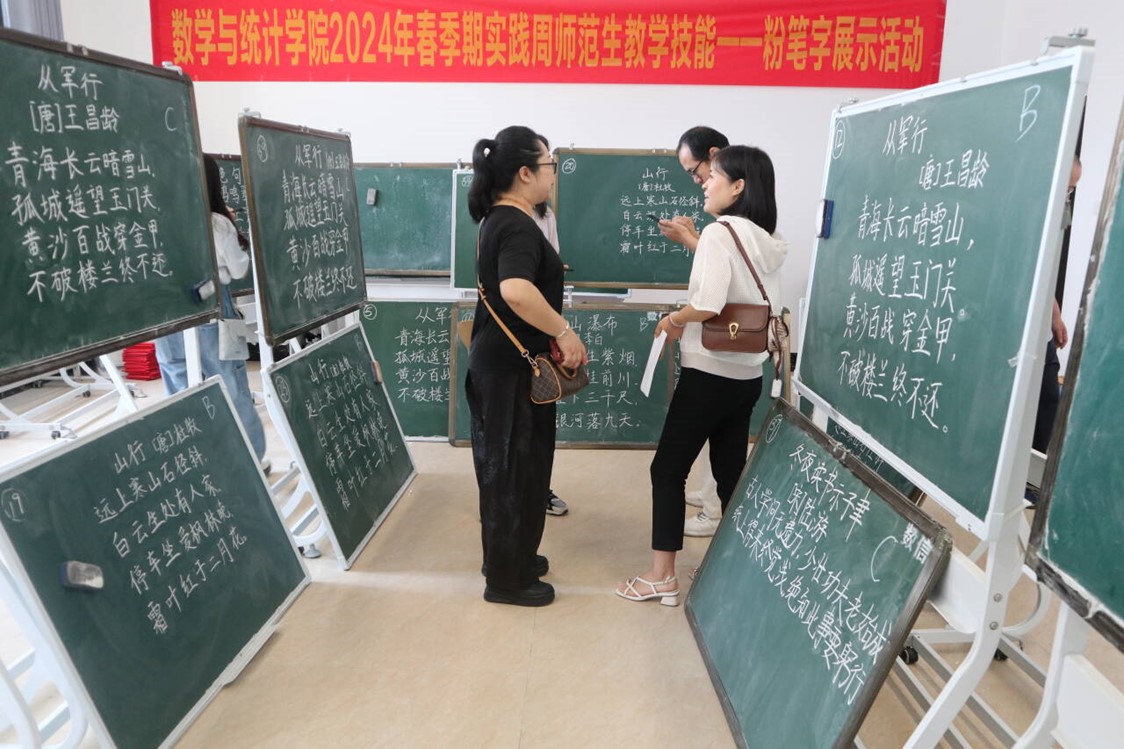 为加强师范生教学技能,提高师范生的专业能力和教学能力。5月24日,beat365在线体育于公司东校区新民楼b401举办2024年春季期实践周师范生教学技能粉笔字大赛。比赛由冯瑜等六位教师担任评委,数学与应用数学2023级全体员工参赛。