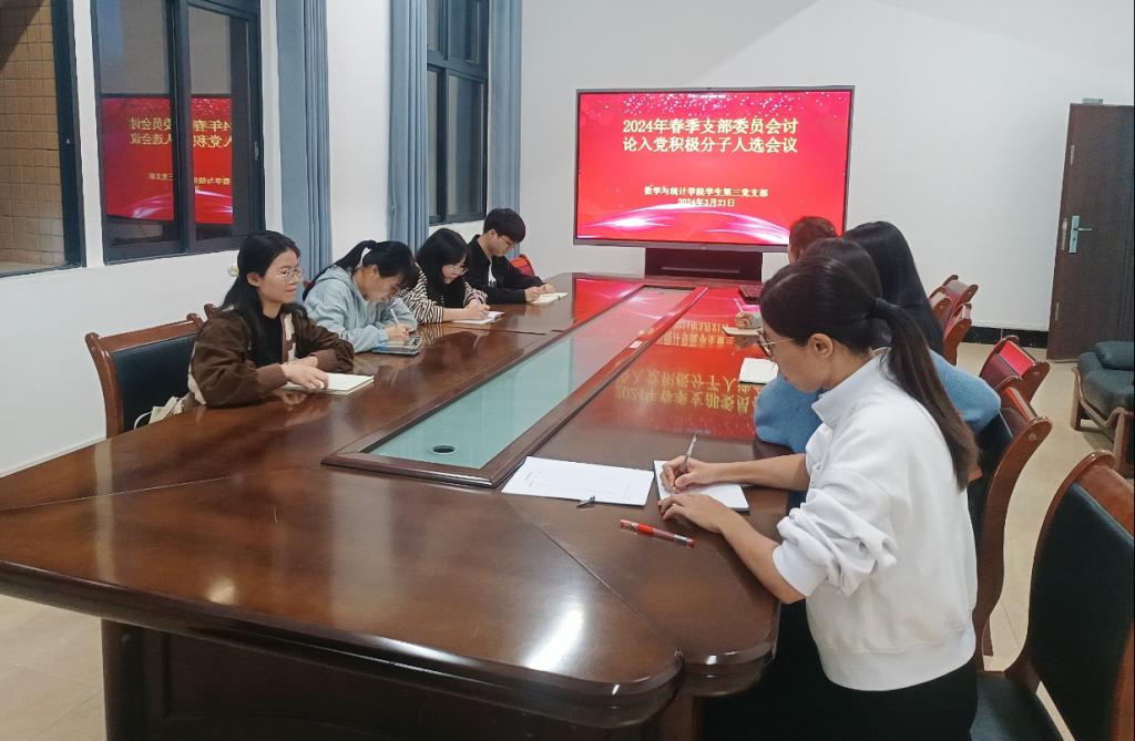 为了进一步健全和完善党支部组织建设,增强党支部的生机与活力,3月21日晚上,beat365在线体育第三党支部在公司东校区新民楼c315召开2024年春季支部委员会确定入党积极分子人选会议。会议由支部书记潘金兰老师主持,全体支部委员参加。